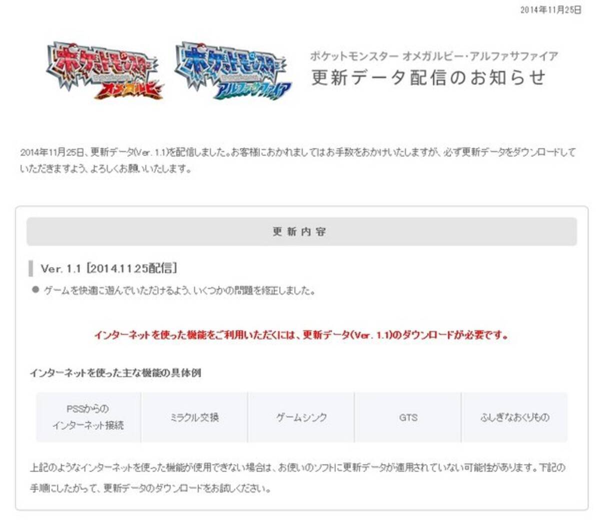 ポケットモンスター オメガルビー アルファサファイア更新データ Ver 1 4 配信のお知らせ
